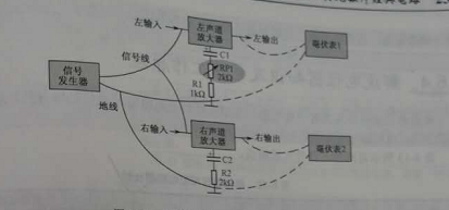 立體聲平衡調(diào)整方法:給左右聲道輸入適當(dāng)?shù)南嗤笮〉臏y試信號(一般特定頻率的正弦信號,有信號發(fā)生器提供),如圖2所示,在左、右聲道輸出端分別街上毫伏表,調(diào)整平衡貼片可調(diào)電阻RP1,使兩個(gè)聲道輸出信號幅度大小相等。